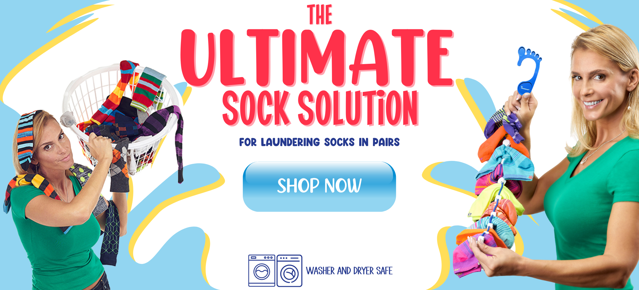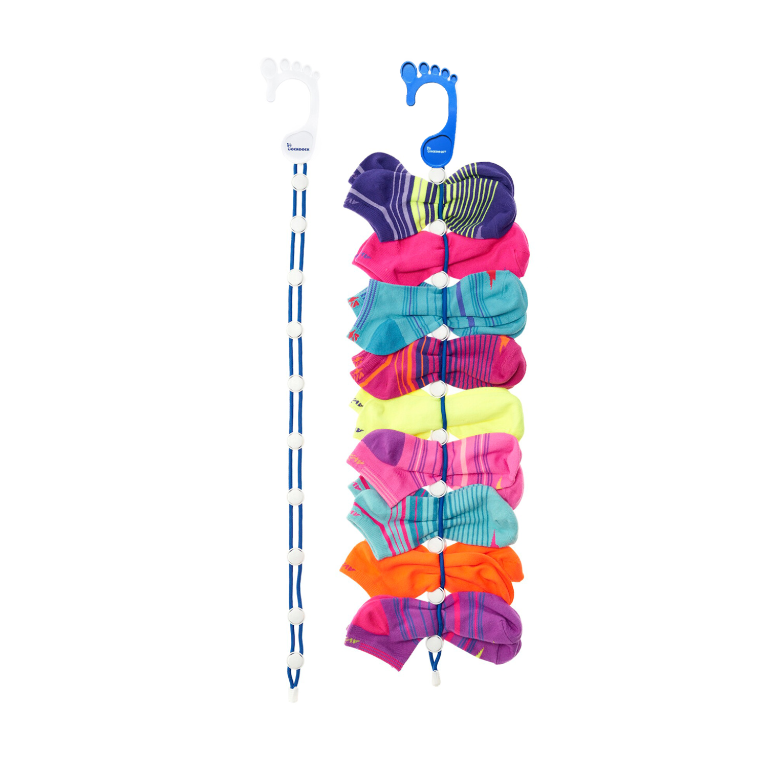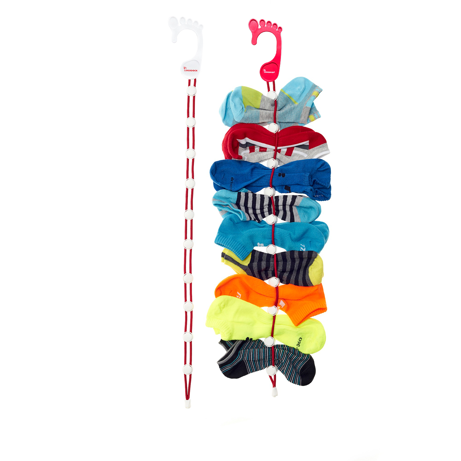 Each SockDock holds 9 pairs of socks and adjusts to keep everything together. You’ll receive 2 SockDocks (1 for dirty socks, 1 for clean) so laundering socks becomes a breeze.
