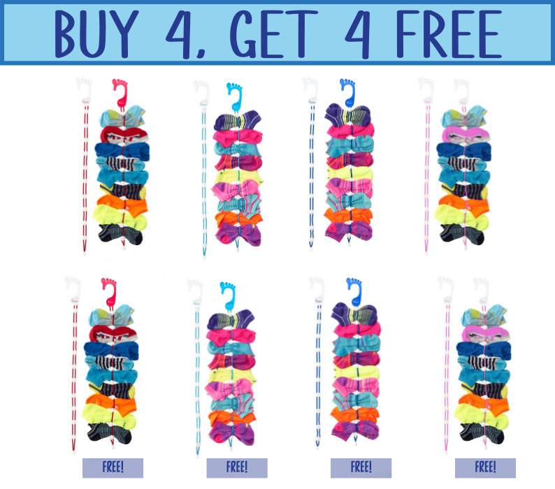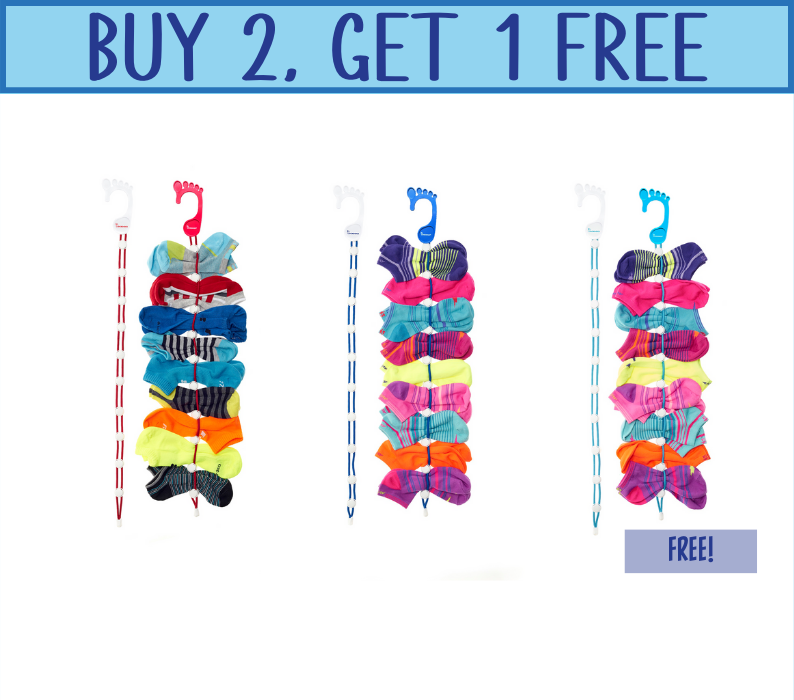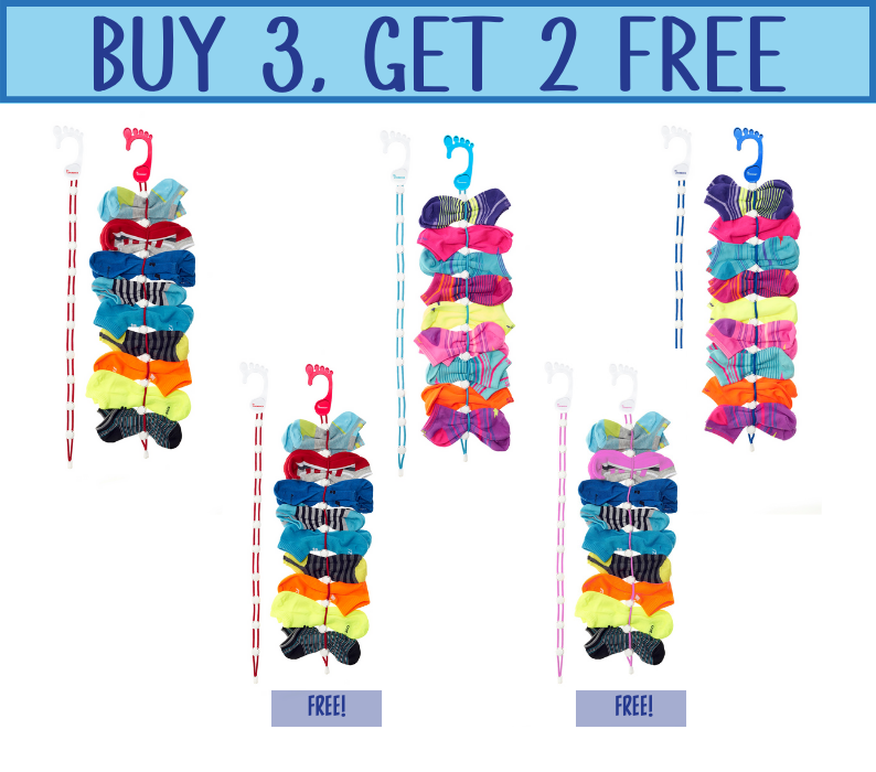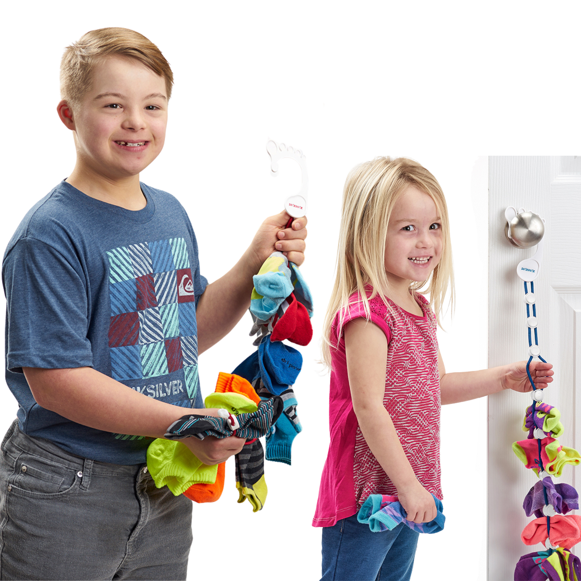 Each SockDock holds 9 pairs of socks and adjusts to keep everything together. You’ll receive 2 SockDocks (1 for dirty socks, 1 for clean) so laundering socks becomes a breeze.